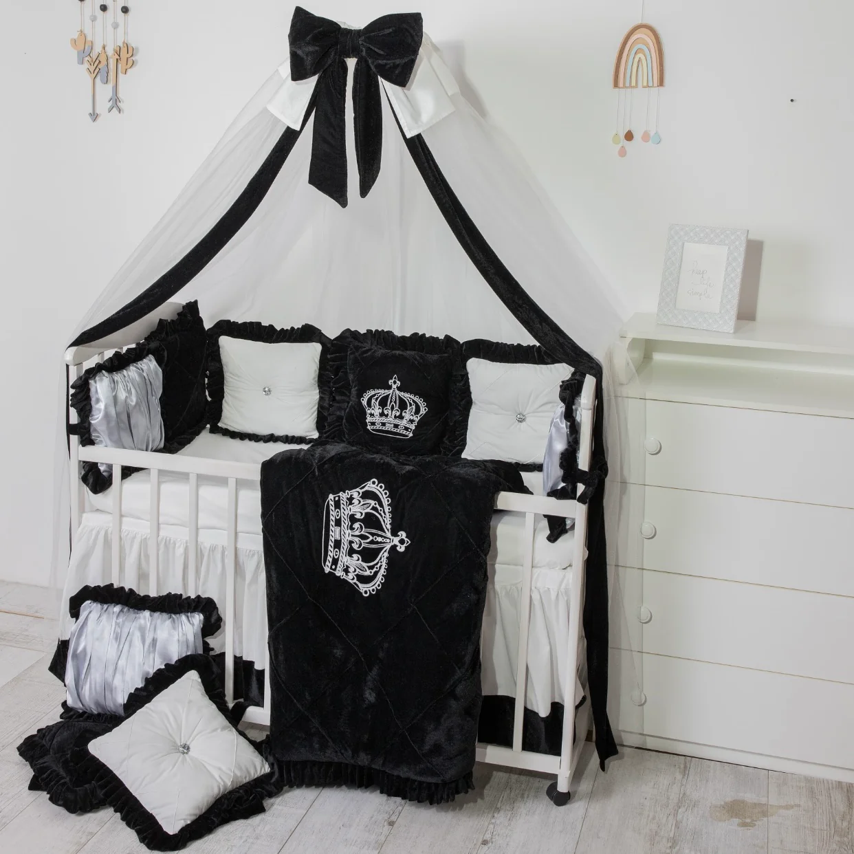 Luxury Black & White Baby Crib Bedding Set – Crown