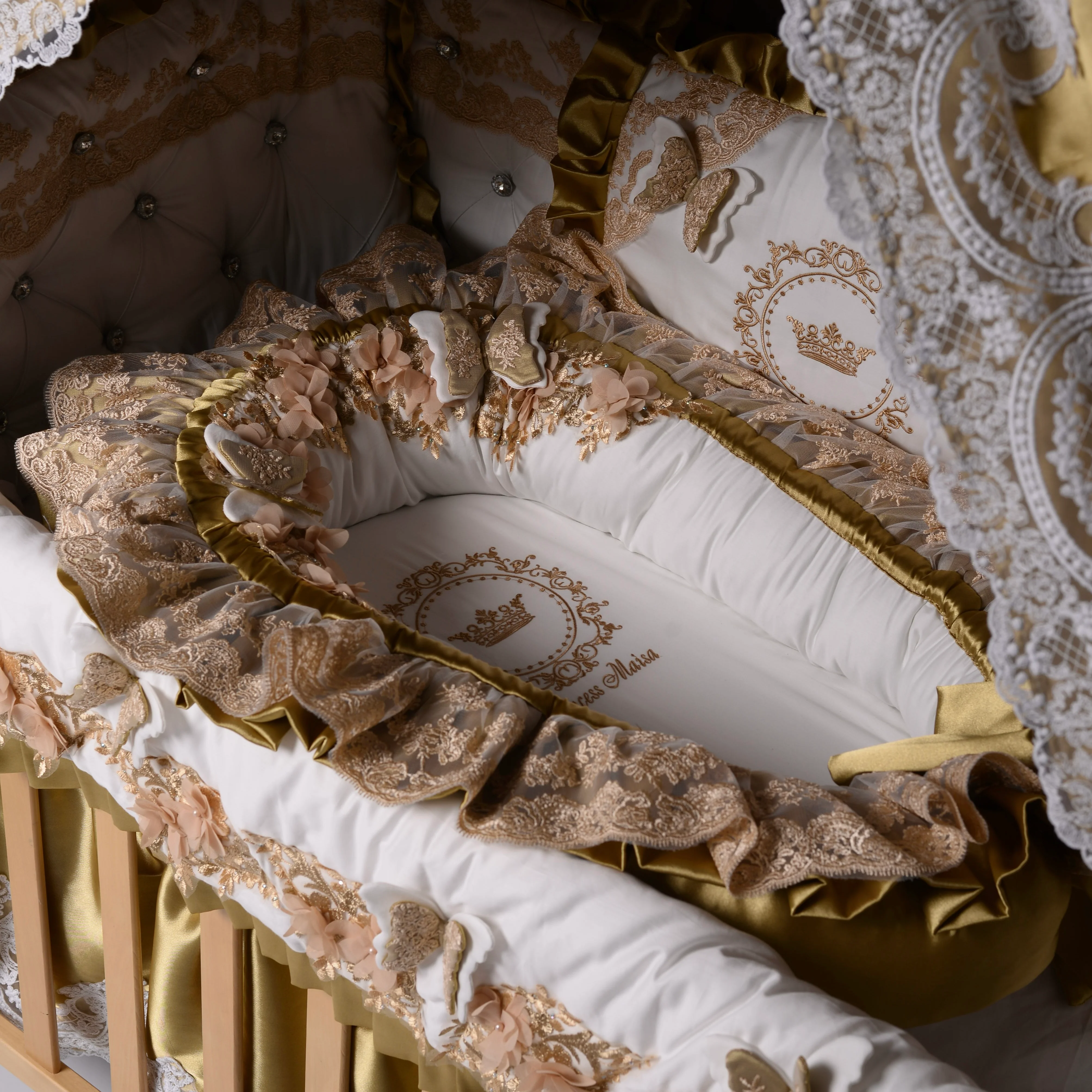 Crafted from high-quality materials, this gold baby bedding set is ideal for baby showers, new parents, and luxury nursery decor.