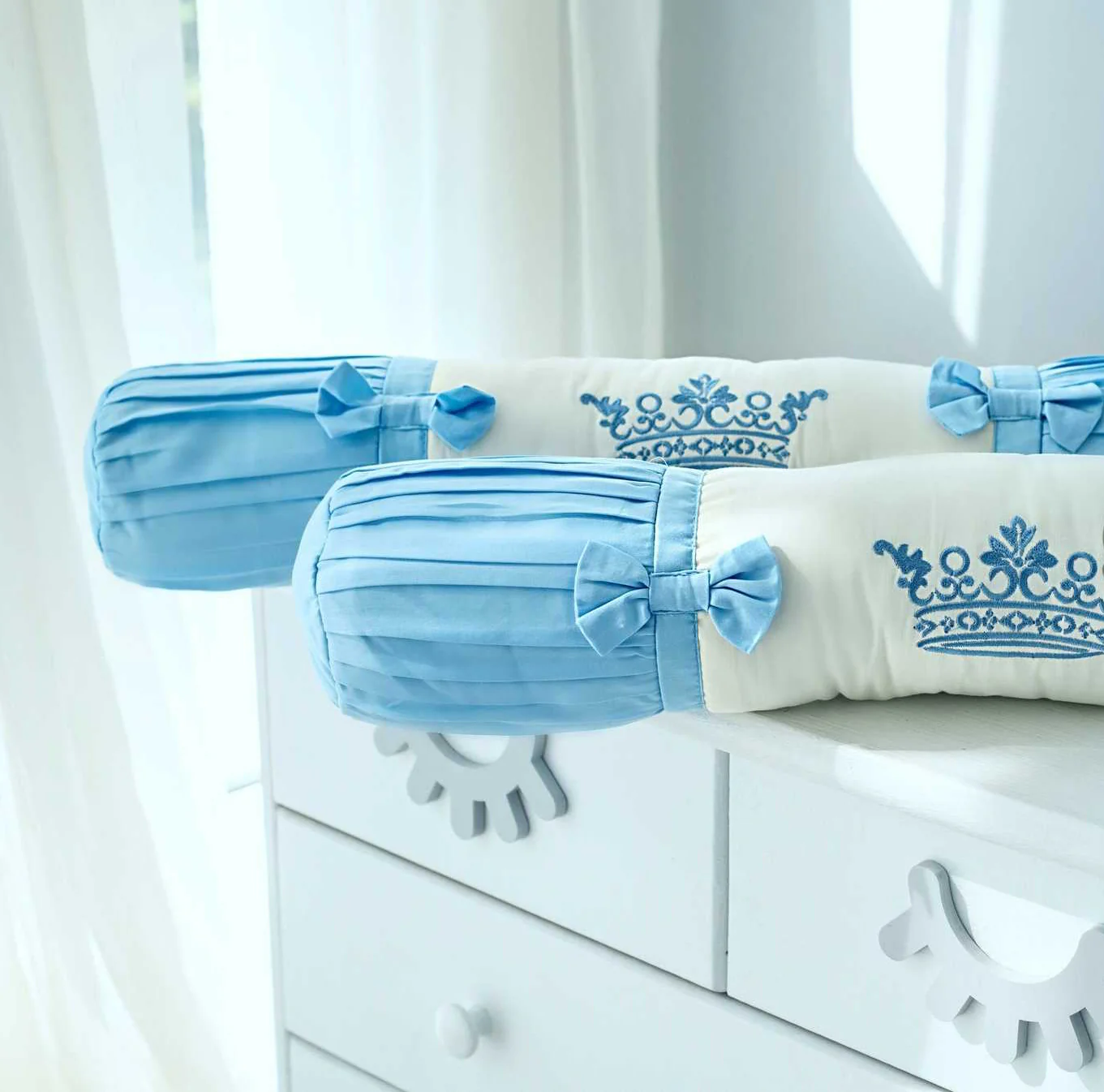 The soothing light blue color creates a serene and peaceful environment for your baby boy, perfect for any nursery theme. The addition of regal crown embroidery makes this set even more special, ideal for creating a personalized space that reflects your style.