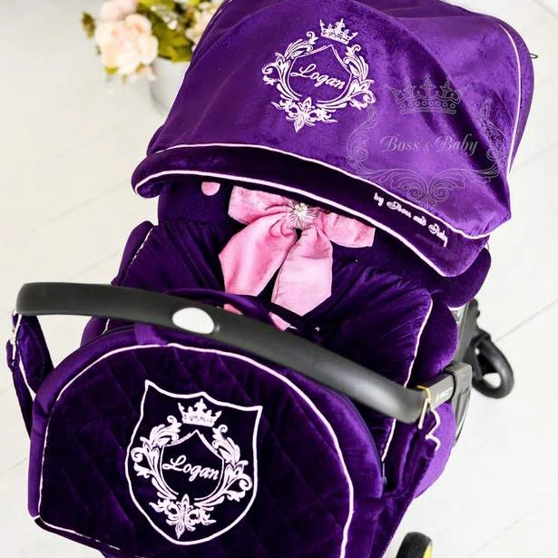 This personalized purple baby car seat cover set is ideal for parents who want both coordinated style and daily functionality in their baby travel essentials.