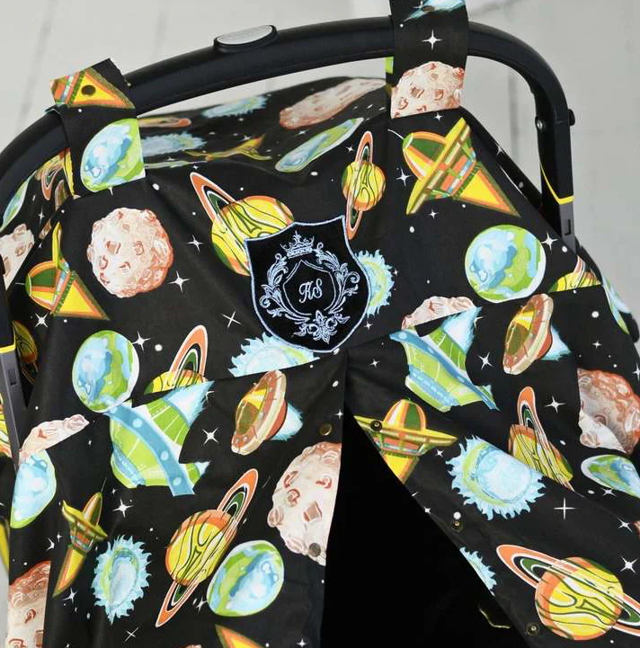 Personalized Space-Themed Baby Car Seat Canopy – Universal Fit