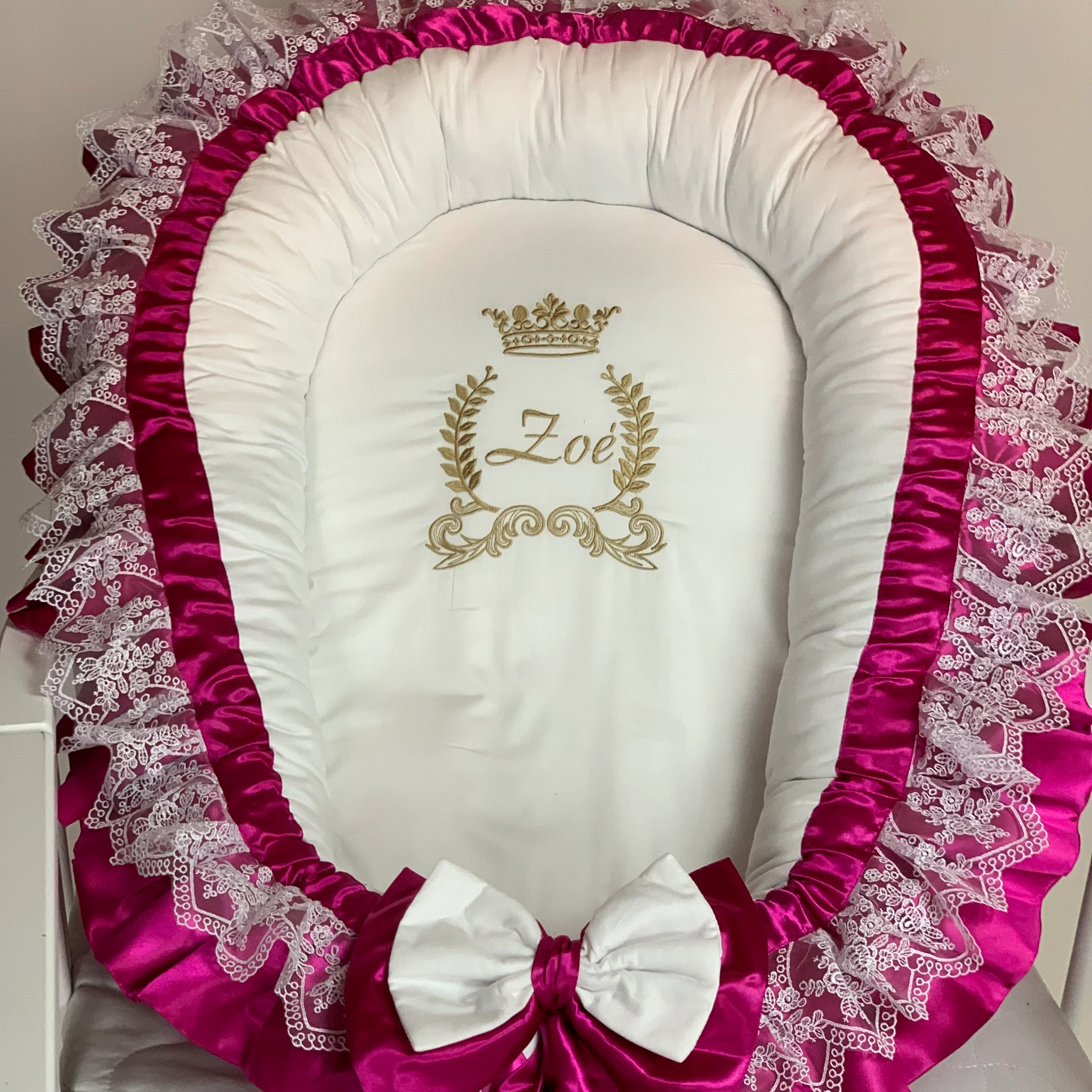 Pink Baby Nest with White Ruffles – Custom for Girls