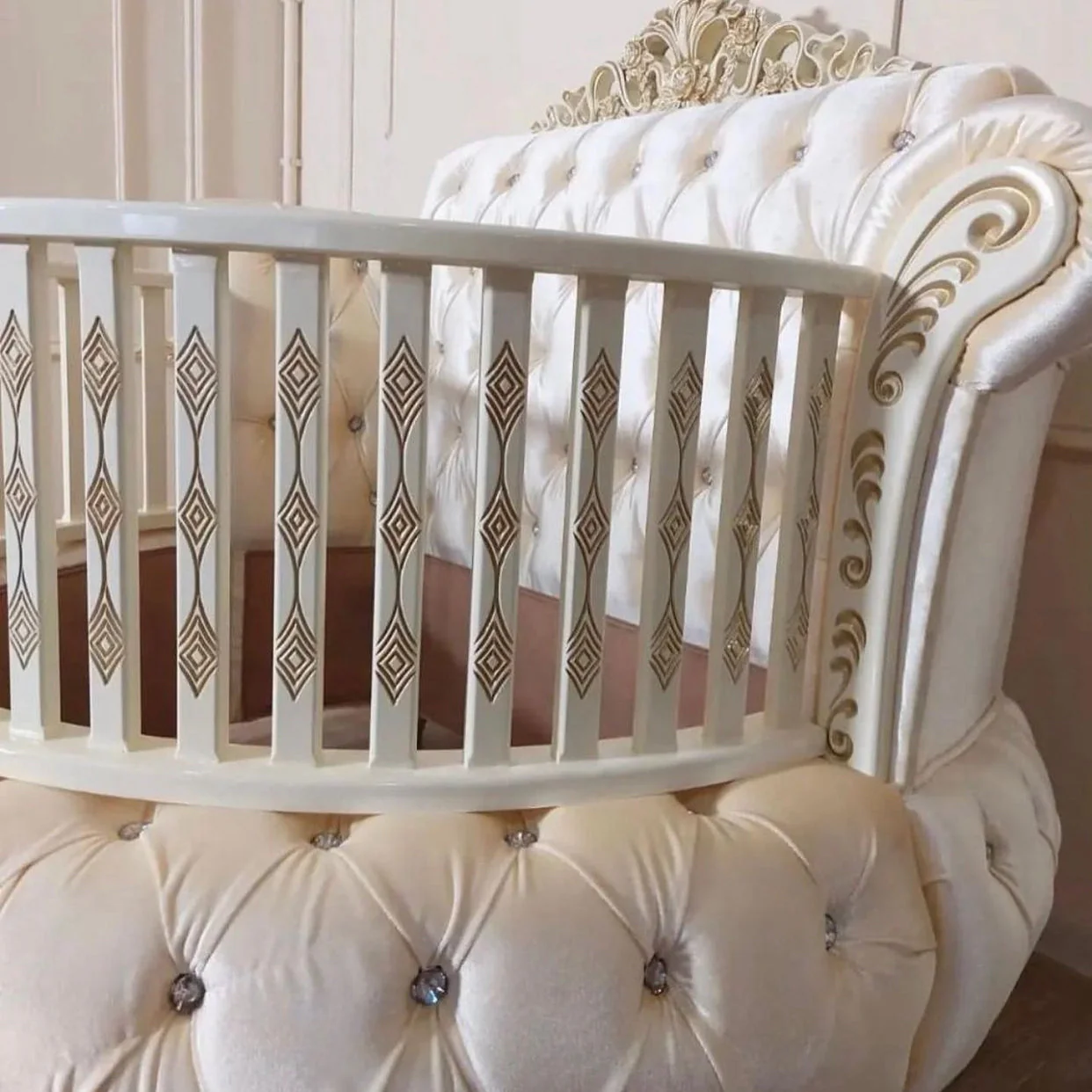 Transform your baby’s nursery into a royal retreat with our Luxury Velvet Round Crib, adorned with sparkling rhinestones for a regal touch. This plush velvet crib is designed for elegance, comfort, and uniqueness, making it the perfect statement piece for your little prince or princess.