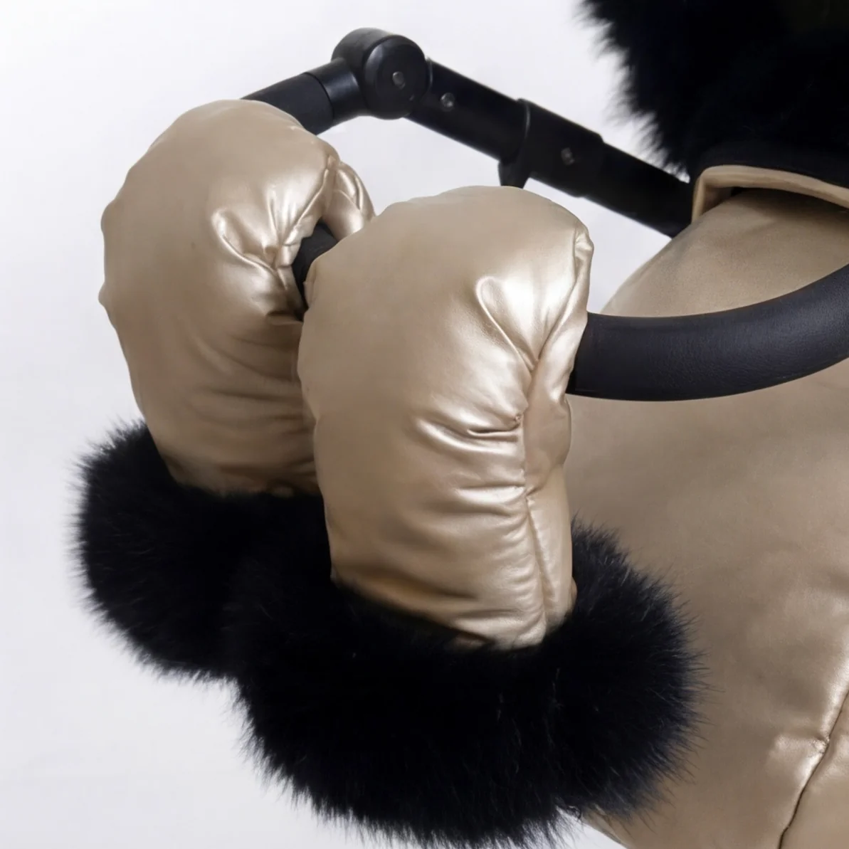 Champagne Gold Stroller Cover Set with Black Fur – Custom Made